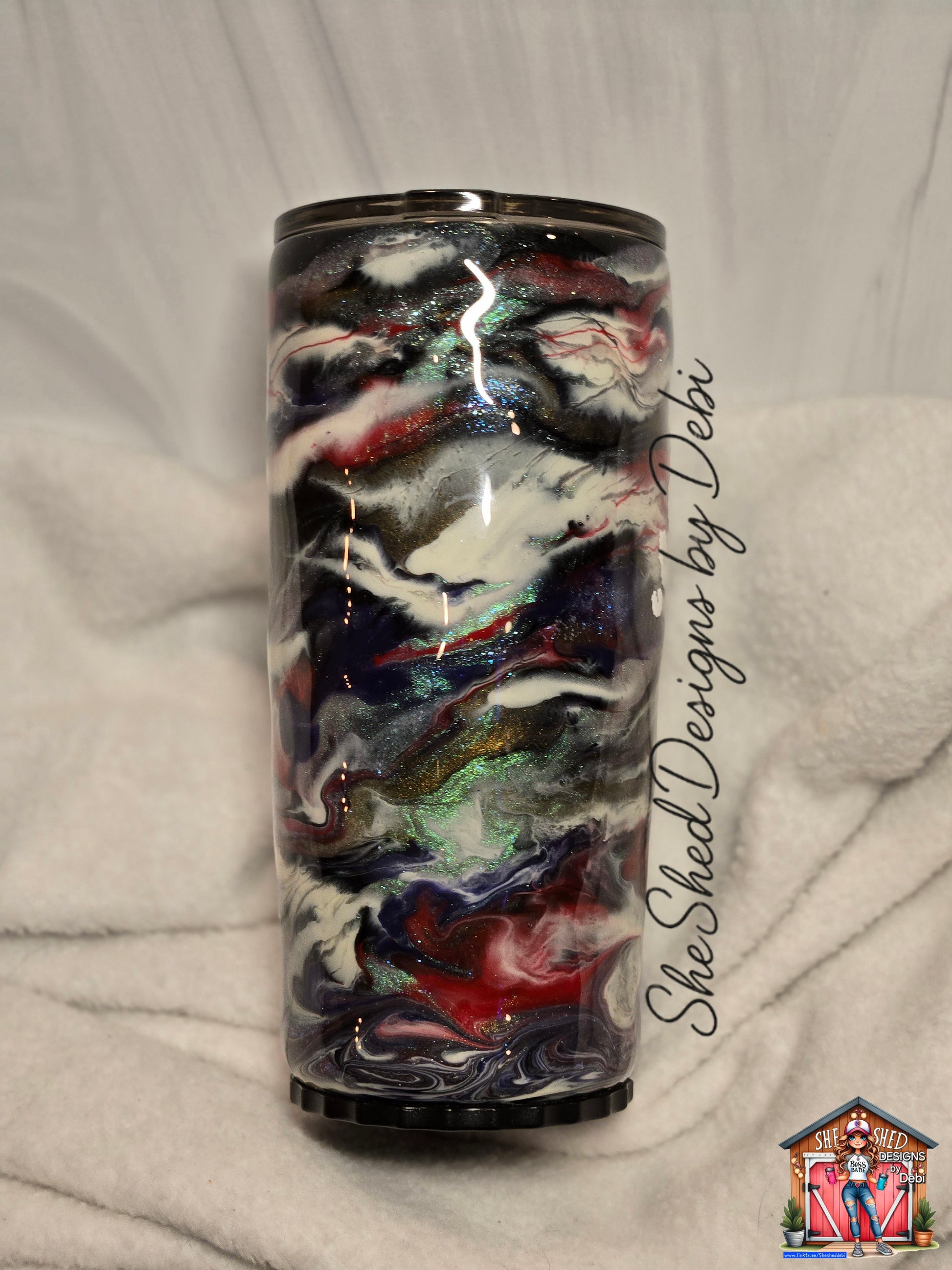 Handmade 20oz stainless steel tumbler featuring a unique ink-swirl design and the inspiring phrase “Grow Through What You Go Through.” Double-wall insulated to keep drinks hot or cold. Includes hidden stainless steel straw and cleaning brush right in the bottom. Each tumbler is one of a kind.