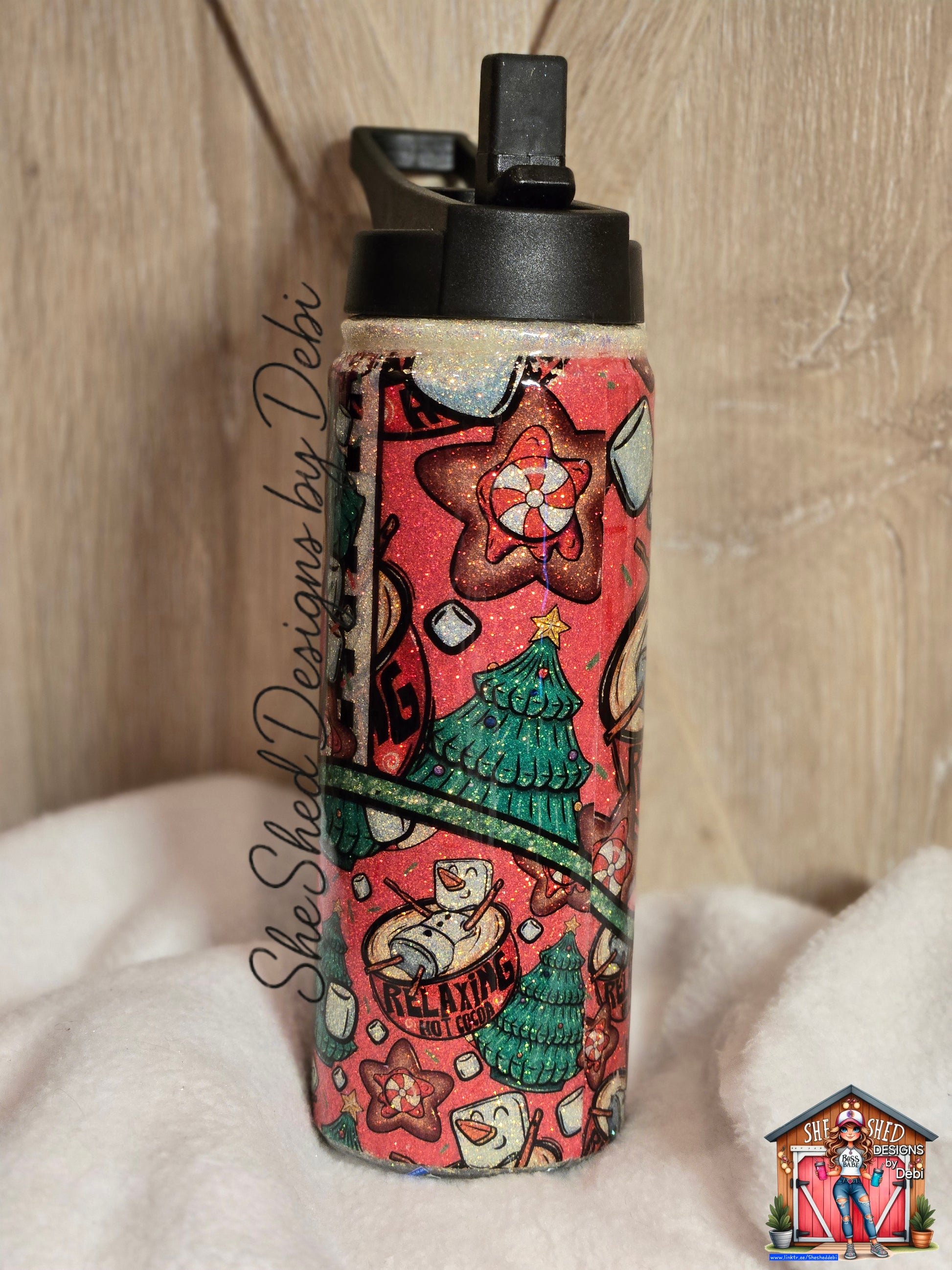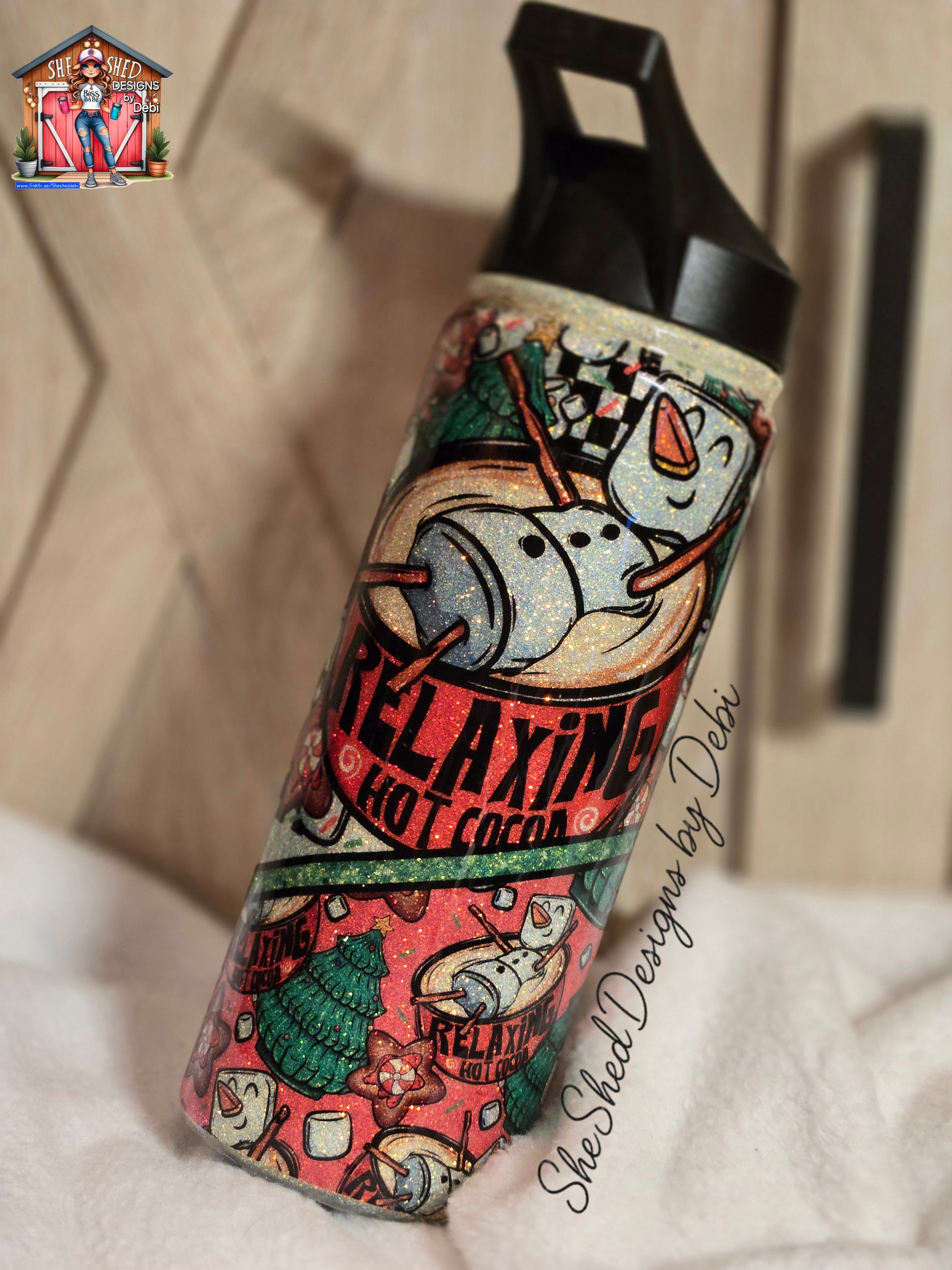 Relaxing Hot Cocoa S’mores – 20 oz Stainless Steel TumblerCozy up with campfire vibes and sweet s’mores charm! This 20 oz stainless steel tumbler features an adorable snowman enjoying hot cocoa, marshmallows, and festive s’mores details—perfect for keeping drinks hot or cold all season long.